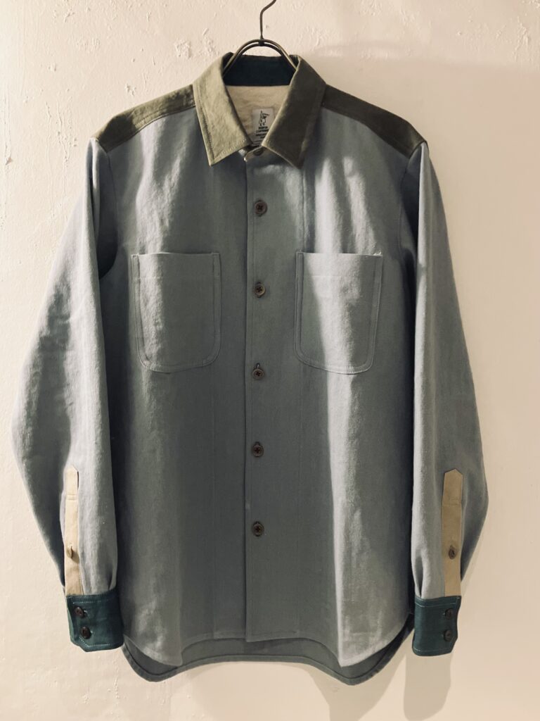 Our new men's shirt made from a cotton-linen blend herringbone fabric has arrived!This shirt features a natural-toned color palette. It has nut buttons, and we paid attention to color coordination even in hidden areas like the cuff linin... -