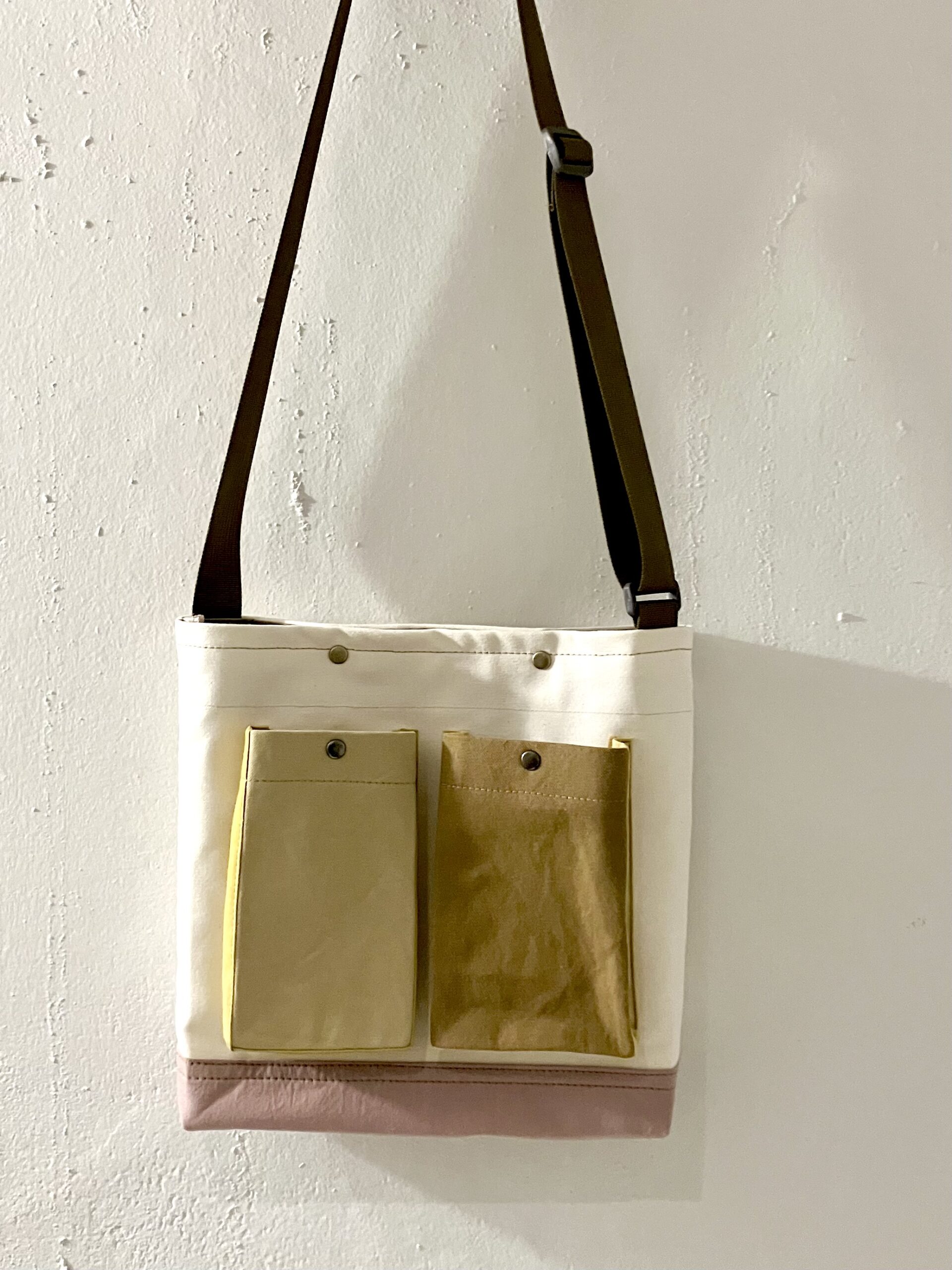 Fresh white canvas meets the soft, cheerful hues of spring. This compact shoulder bag is designed for lighthearted walks and sunny days out.